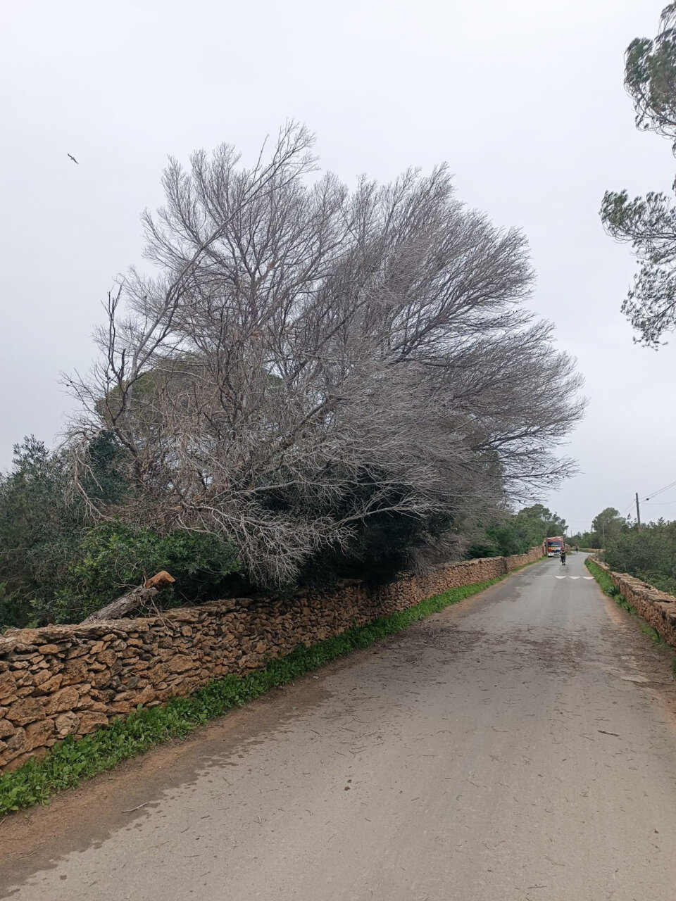 Este miércoles 28 de enero, a las 7.45 horas, se recibió un nuevo aviso de la Policía Local por la caída de un árbol sobre un camino asfaltado en la zona de Can Parra. Hasta el lugar se desplazaron nuevamente un vehículo ligero y una autobomba ligera, con un mando y dos bomberas, retirando también un pino que se encontraba apoyado sobre el cableado eléctrico.