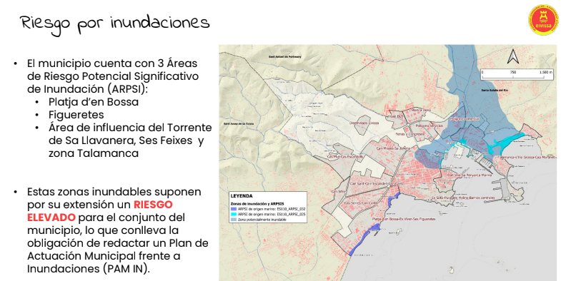 La actualización del plan se produce tras los recientes episodios meteorológicos severos, como la borrasca ex Gabrielle y la DANA Alice. Aunque el Plan Especial frente al Riesgo de Inundaciones de les Illes Balears (INUNBAL) no considera que la mayoría de los torrentes de Eivissa sean masas de agua permanentes, la presencia de áreas extensas potencialmente inundables obliga al Ayuntamiento a una planificación específica.