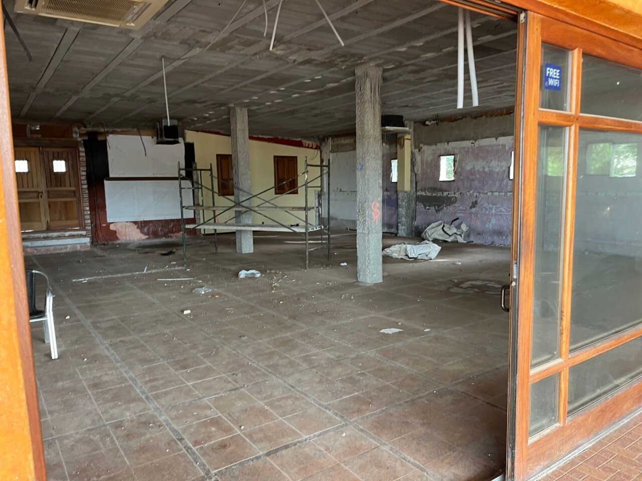 El restaurante se encuentra cerrado desde hace años y presenta un estado de abandono.