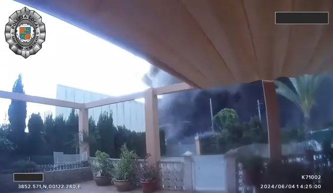 La Policía Local de Sant Josep ha difundido un video del rescate de una mujer en medio del incendio de la nave industrial de Citubo, que ha sufrido la total destrucción producto de las llamas desatadas este martes.