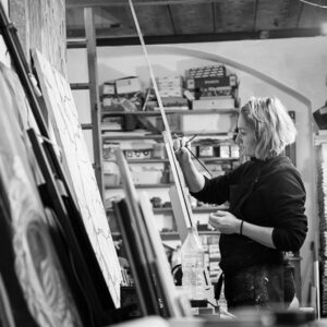 La ibicenca Romanie Sánchez Smele (49 años) es artista y profesora particular de arte además de bombero forestal. Una mujer que de mañanas apaga fuegos y robustece bosques y que, por las tardes saca su necesidad de explicarse sin palabras sobre canvas vacíos. Manos que viven entre una desbrozadora o un pincel, un hacha o un pomo de pintura.