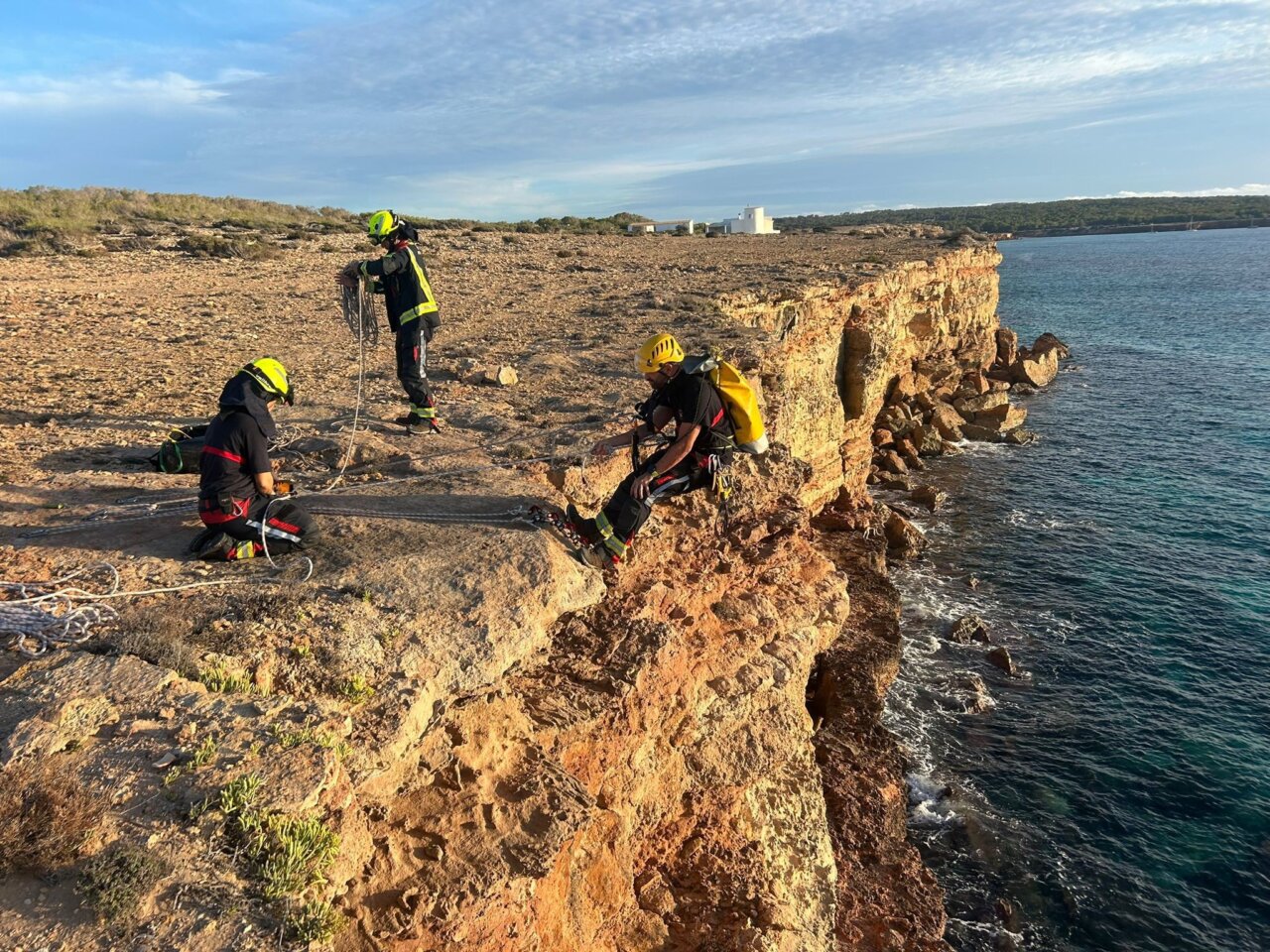 Bomberos de Formentera despliegan importante operativo para rescatar a un perro de un acantilado