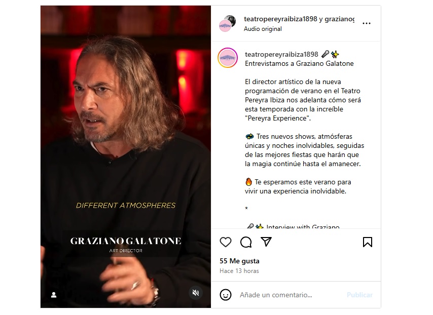 En sus redes sociales, Galatone dijo que “iniciar esta experiencia en el Teatro Pereyra de Ibiza es una emoción única. No puedo esperar para compartir con vosotros este nuevo capítulo hecho de pasión, música y nuevas oportunidades”.
