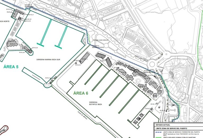 “A día de hoy, las áreas 4 y 5 y las 6 y 7 (éstas a través del vial principal público de Botafoc) ya están conectadas, no así el Área 5 con el Área 6”, explica la Autoridad Portuaria ante una alegación de los Estibadores Portuarios del puerto de Ibiza en la que cuestionaba la viabilidad de lo que parecía un nuevo vial en la redacción anterior.
