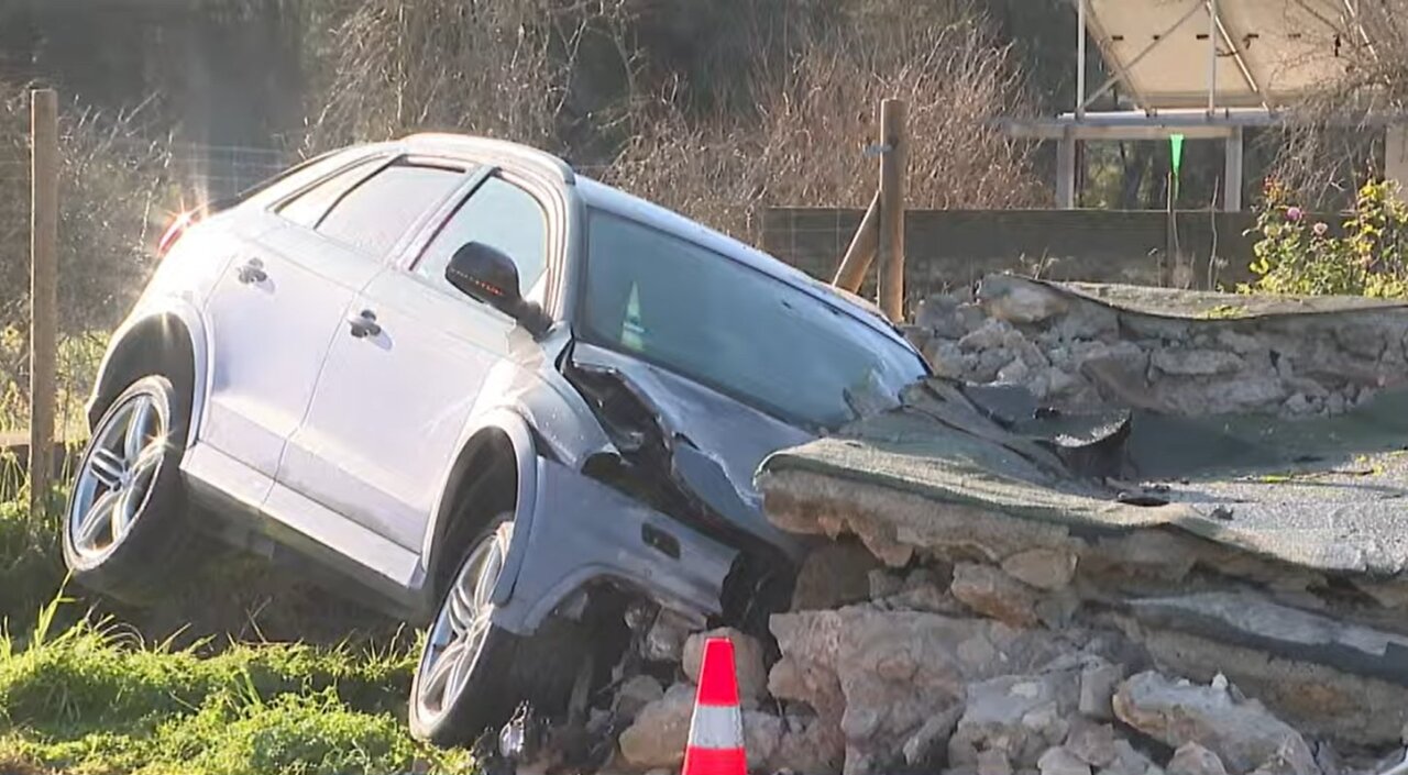 El suceso tuvo lugar sobre las 5.00 horas, en un tramo donde la velocidad máxima permitida es de 30 kilómetros por hora, cuando un Audi Q3 se salió de la vía y terminó incrustado en el tejado de una caseta de piedra, provocando el derrumbe parcial de la construcción.