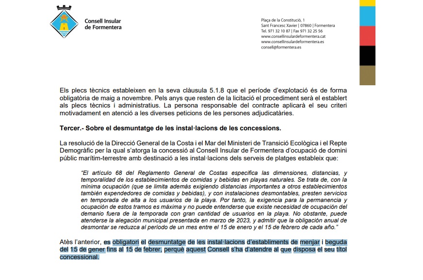 Desde el 7 de octubre de 2024 tanto el Consell como los propietarios de los chiringuitos sabían que el Govern Balear no iba a ceder ante la obligación estipulada en el Reglamento General de Costas de desmontar las estructuras de playa cada año.