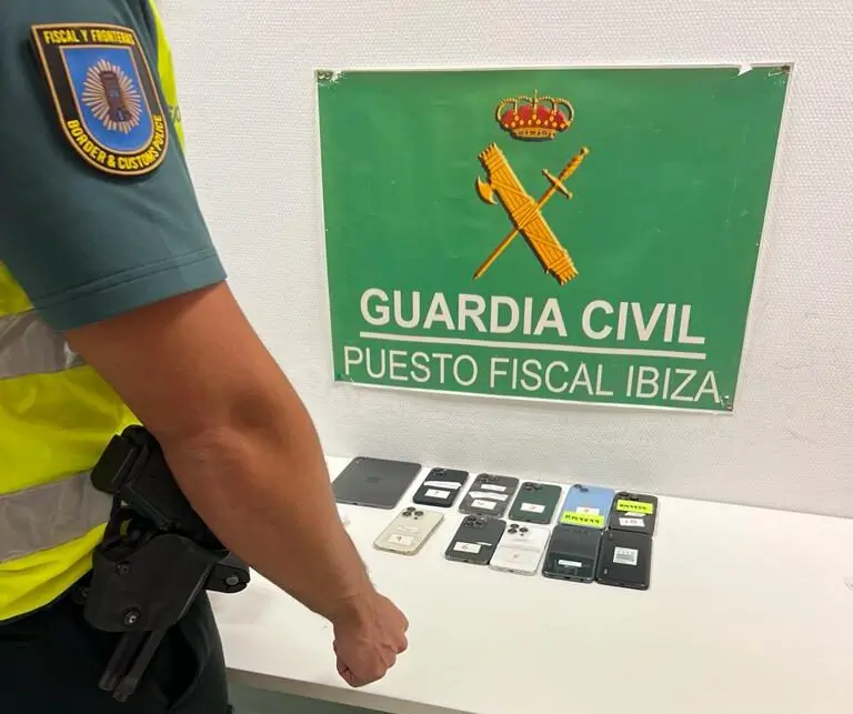 La Guardia Civil ha detenido a un hombre de nacionalidad española, como presunto autor de un delito de hurto continuado de 10 teléfonos móviles de última generación. En el aeropuerto de Ibiza, agentes del Servicio Fiscal detectaron una maleta que iba a ser facturada en un vuelo a la Península que contenía objetos extraños en el interior.