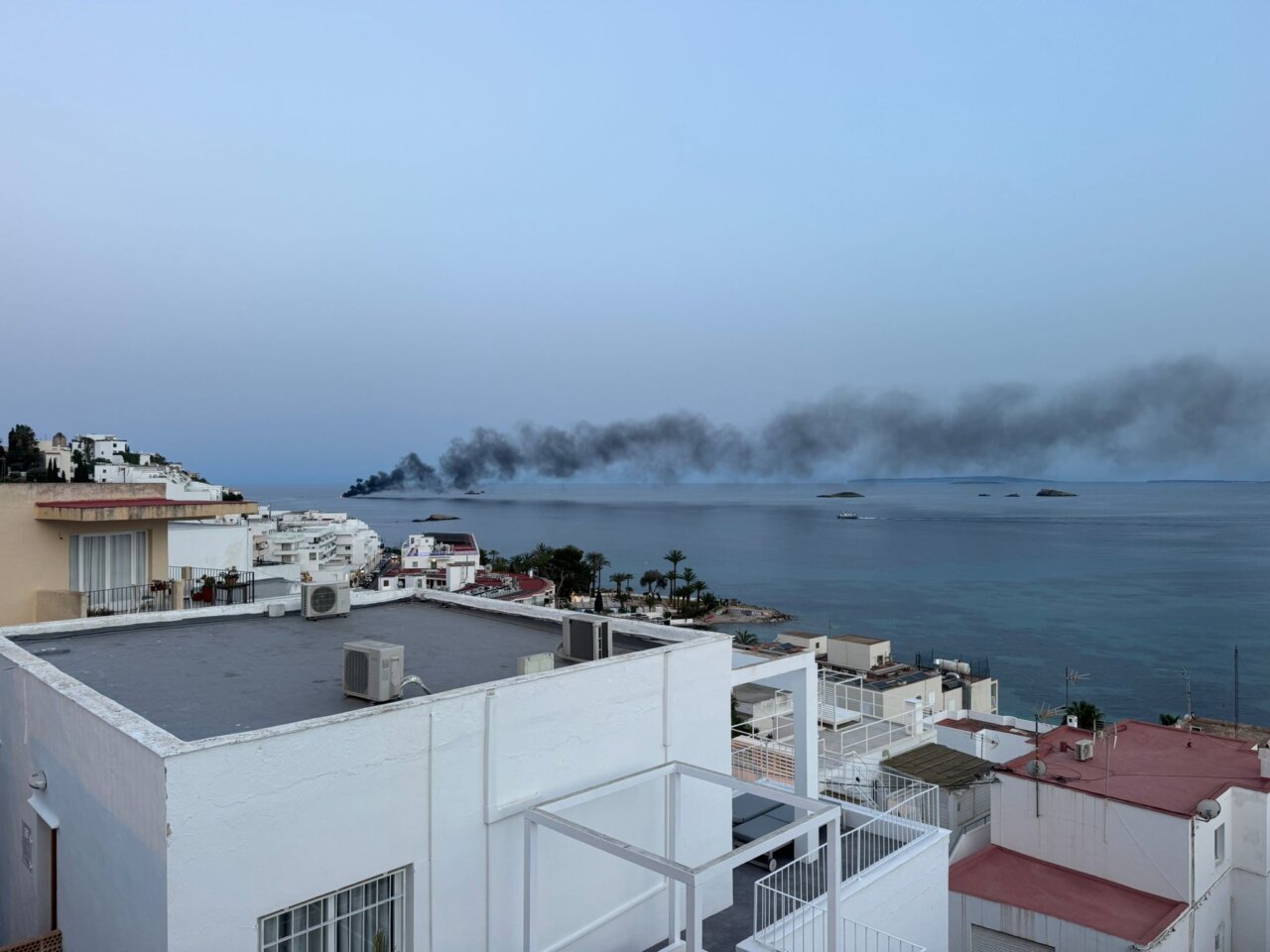 El incendio se inició cuando el yate se encontraba en la entrada del puerto de Ibiza, generando una gran columna de humo negro visible desde distintos puntos de la ciudad.