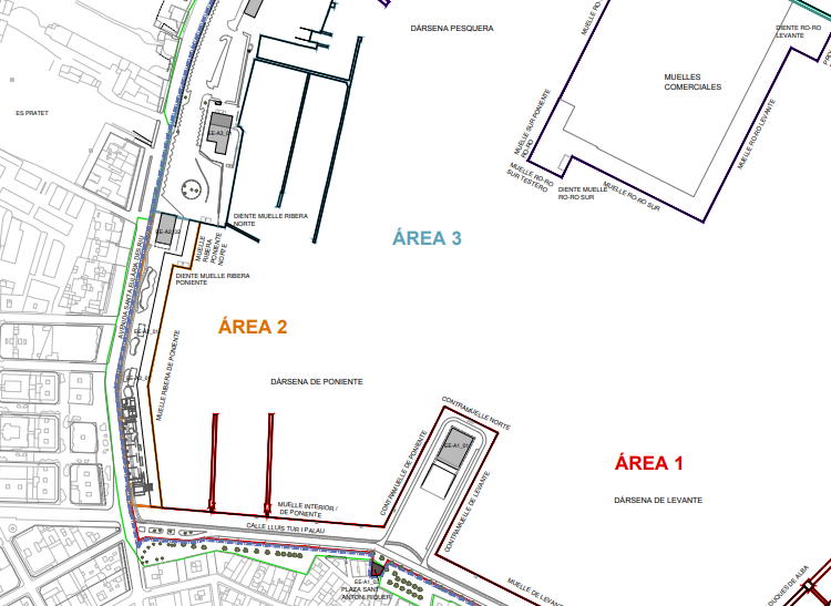 Por ello propone mantener dicho uso en las instalaciones del club en el Área 3 y “ampliarlas en parte del Área 2”, zona actualmente destinada al embarque y desembarque del tráfico de pasajeros y vehículos con Formentera en el Muelle Ribera de Poniente.