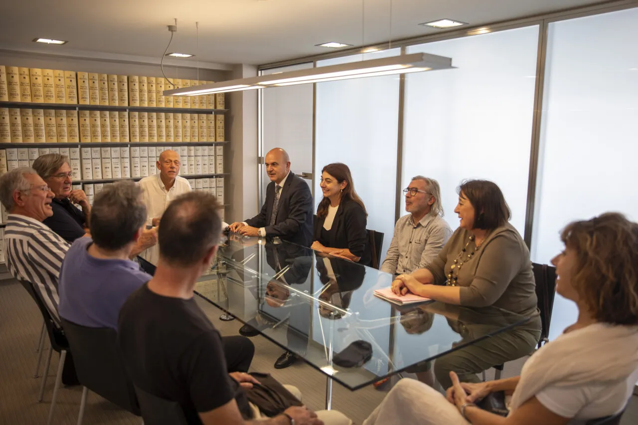 La firma de la escritura ante notario ha contado con la presencia del presidente insular, Vicent Marí, y de la consellera de Cultura, Educación y Patrimonio, Sara Ramon, junto a los propietarios del edificio. de Sant Antoni