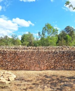 -Completamente. De mi bisabuelo Joan Micolau heredé la técnica de como colocar las piedras para construir pared seca, aunque falleció cuando yo tenía tan solo 2 años. Su estilo y ahora el mío, era colocarlas de cantu, sempre cap es mateix jeient, que significa: ladeadas, siempre hacia el mismo sentido. Lo importante es ir rompiendo líneas horizontales y verticales, acabando con un aspecto de puzzle..al ser piedras planas colocadas así, se consigue que con su propio peso se van acuñando unas con otras con el paso del tiempo.