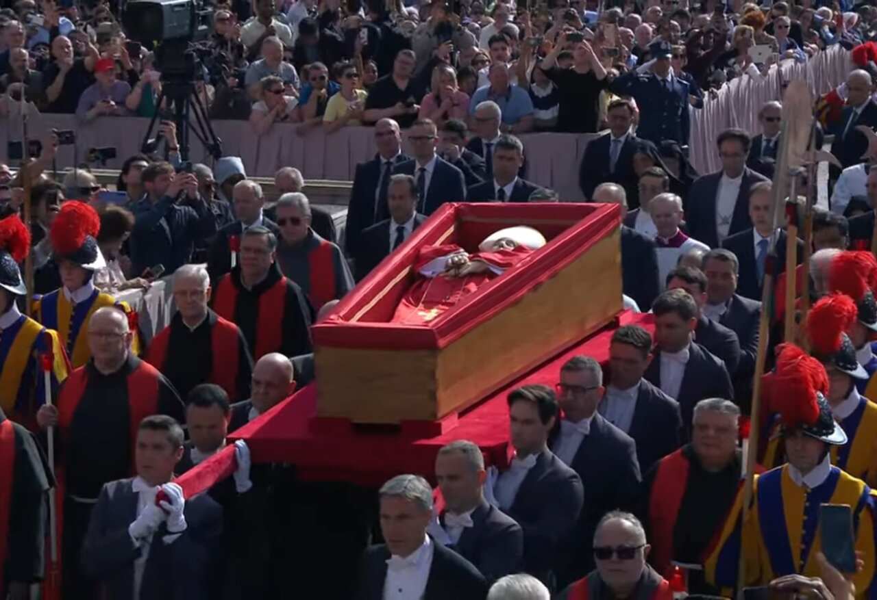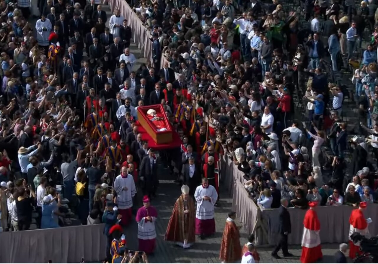 A las 9:00 horas, el féretro del Santo Padre fue trasladado desde la residencia de la Casa Santa Marta hasta la Basílica de San Pedro. El cortejo ha sido presidido por el cardenal Kevin Joseph Farrell, camarlengo de la Iglesia Católica, quien dirigió la oración inicial antes del recorrido.