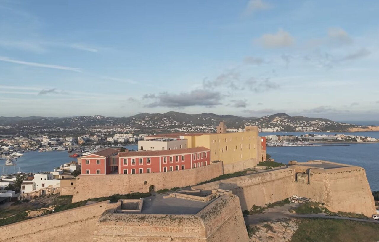 El vídeo pone el acento en la singularidad del enclave, situado en lo más alto de la ciudad y dominando el Mediterráneo, con vistas al puerto de Ibiza y al recinto amurallado.