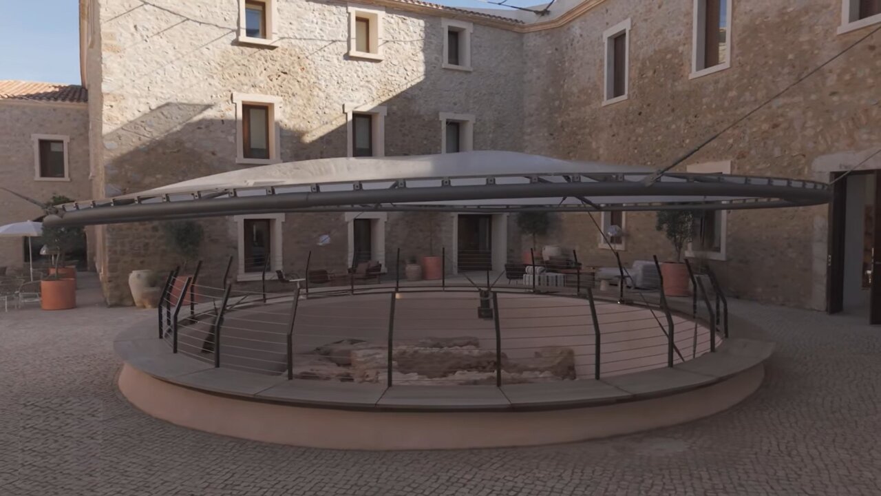 La pieza audiovisual también resalta la rehabilitación del conjunto histórico, donde murallas, baluartes y patios históricos conviven con espacios hoteleros actuales, fruto de un proyecto que ha respetado las distintas etapas constructivas del recinto fortificado.