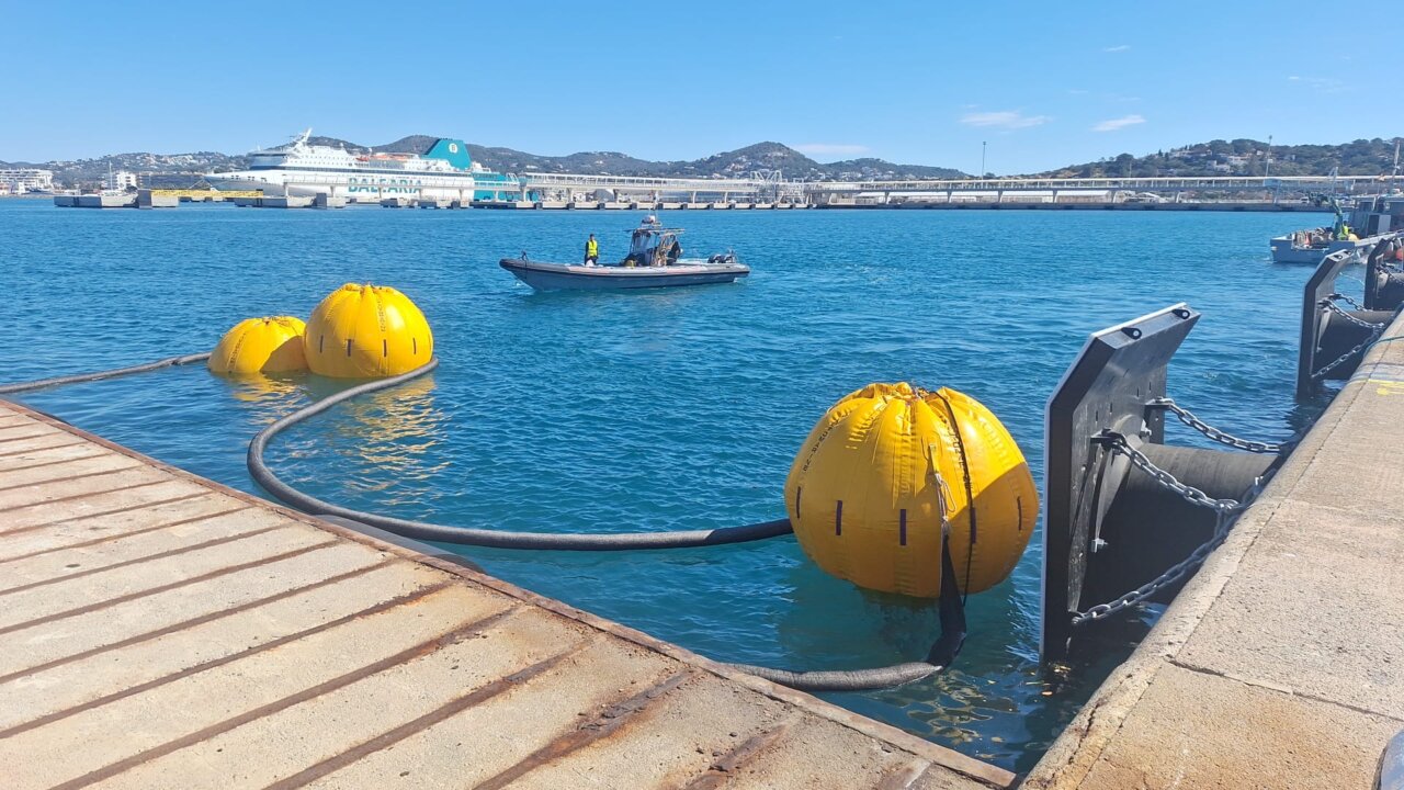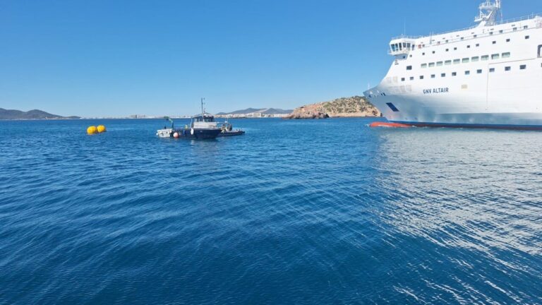 El operativo ha sido coordinado por la APB y ha contado con la presencia del presidente del organismo, Javier Sanz, y del director, Toni Ginard, junto al capitán marítimo de Ibiza, Luis Gascón, que han seguido los trabajos desde el muelle de Botafoc.