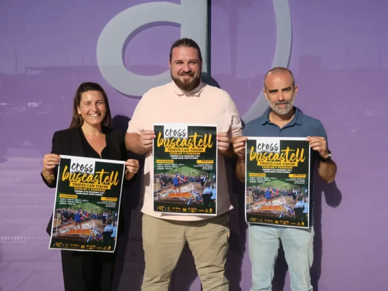 Daniel Sánchez, concejal de Deportes del Ayuntamiento de Sant Antoni de Portmany; Pepita Torres, concejala del área de Buscastell y Forada; y José Gutiérrez, presidente del Club Atletisme Sa Raval, han presentado la competición deportiva del cross de Buscastell Trofeu Can Tixedó, que se llevará a cabo este domingo 19 de noviembre como parte de las festividades de Forada en 2023.