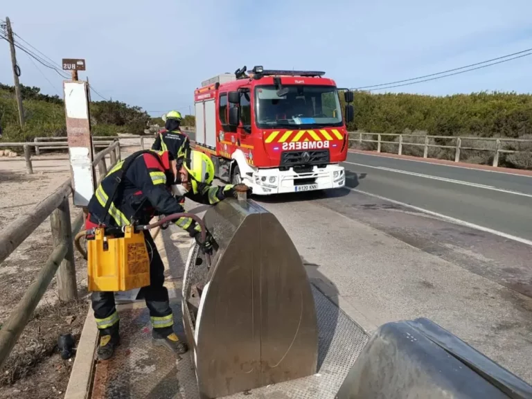 Luego, a las 7:45 de la mañana de este domingo, el 112 recibió otro aviso, esta vez por un poste de madera de luz de una línea de media tensión en la zona de Es Molins, afectado por el fuego. Cuatro bomberos actuaron rápidamente, cortando el poste y sofocando las llamas, aunque la línea eléctrica quedó pendiente de revisión.