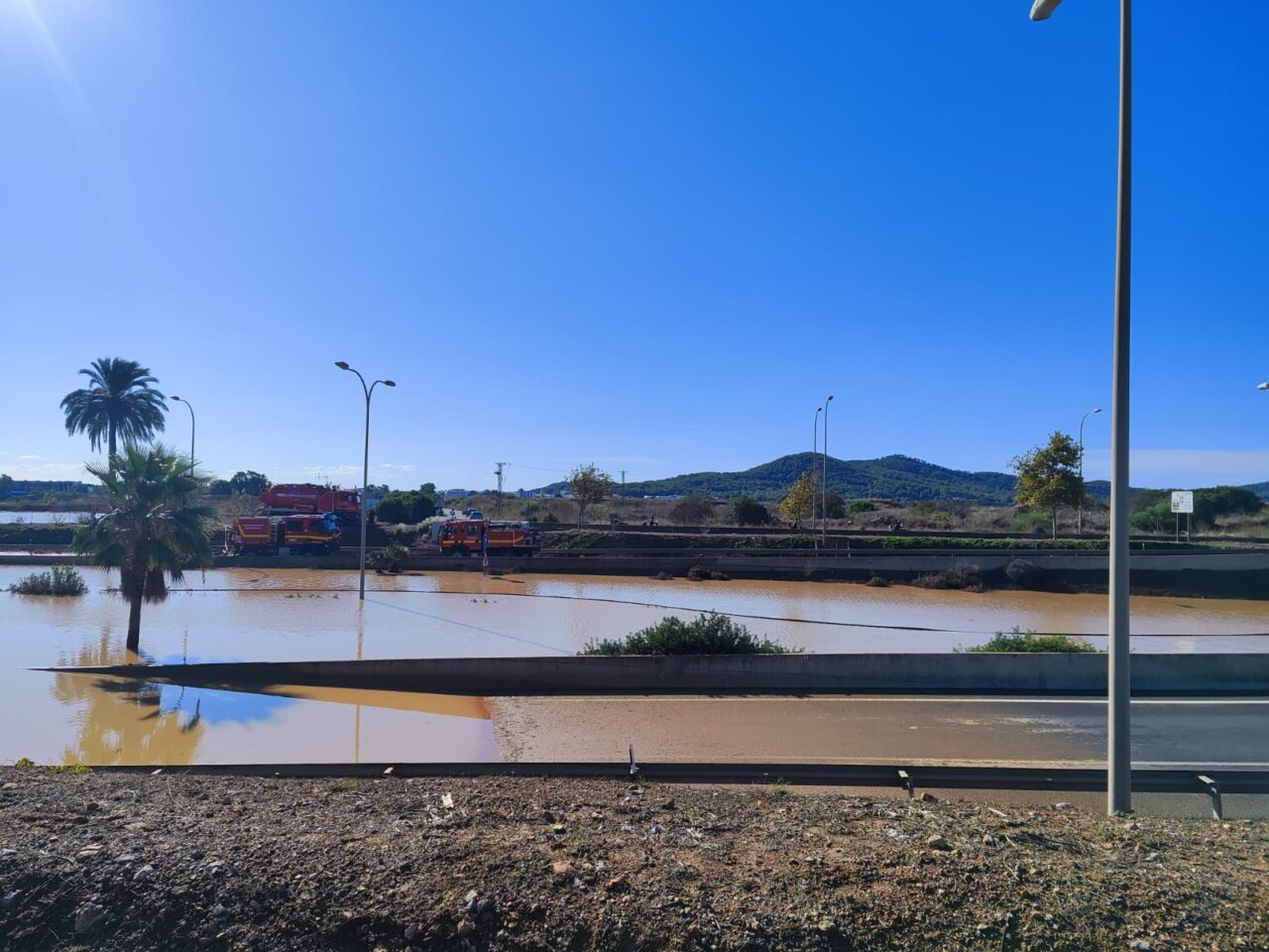 “Tiempo récord” para achicar más de 3 millones de litros de agua en la carretera del aeropuerto de Ibiza