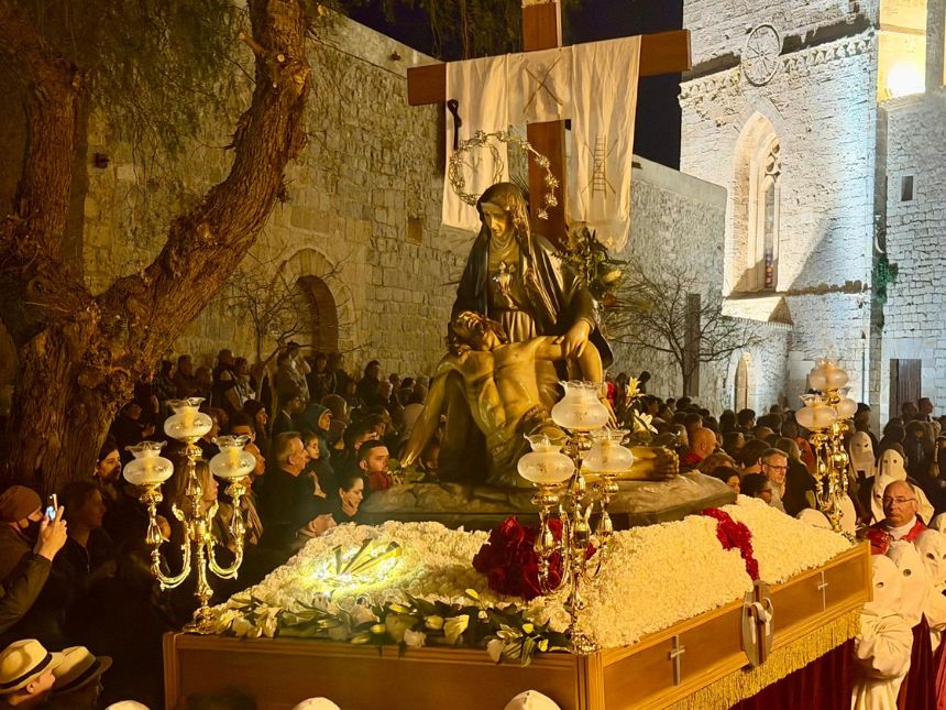 El paso de las cofradías por Dalt Vila se desarrolló en un ambiente de silencio y respeto. La presencia del obispo Vicent Ribas y del conjunto de hermandades reforzó el carácter religioso e institucional del acto, que volvió a evidenciar el arraigo de esta tradición en la isla.
