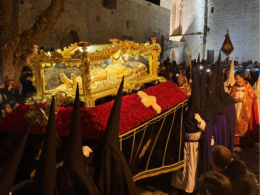 La ciudad de Ibiza celebró este Viernes Santo la procesión del Santo Entierro, que congregó a numerosos fieles en Dalt Vila en el acto central de la Semana Santa. La procesión, presidida por el obispo de Ibiza, Mons. Vicent Ribas, partió desde la catedral con la participación de todas las cofradías, en un ambiente de recogimiento y solemnidad.