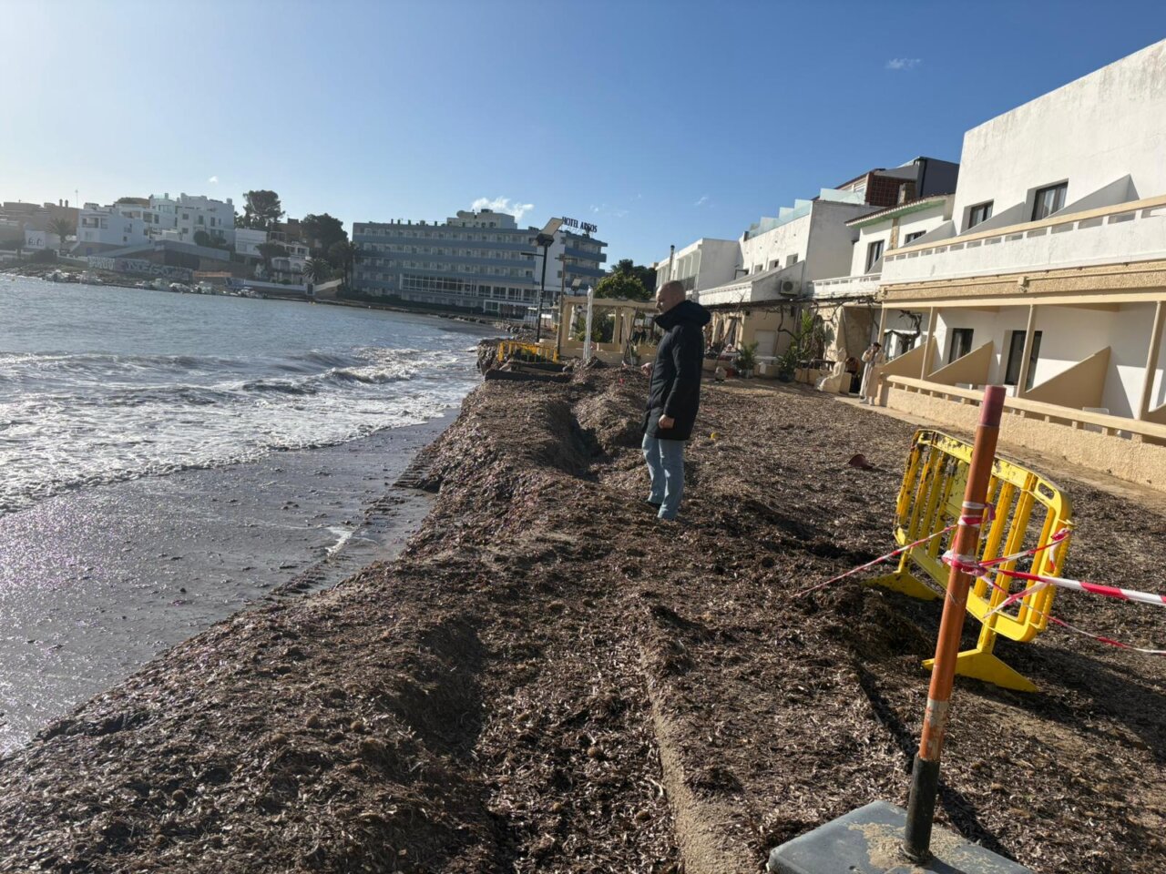 Una de las zonas más vulnerables identificadas por el colectivo es la playa de Ses Salines. Sin embargo, la degradación ya es un hecho visible en otros puntos como Talamanca. En un informe para IB3 se compararon imágenes tomadas en 2008 frente a la situación actual donde se muestra una pérdida drástica de la superficie; donde antes existían entre 25 y 30 metros de arena, hoy la regresión es evidente, especialmente en áreas frente al Hostal Talamanca.