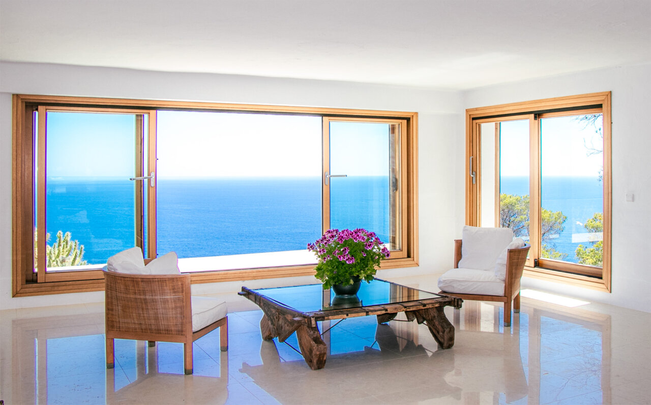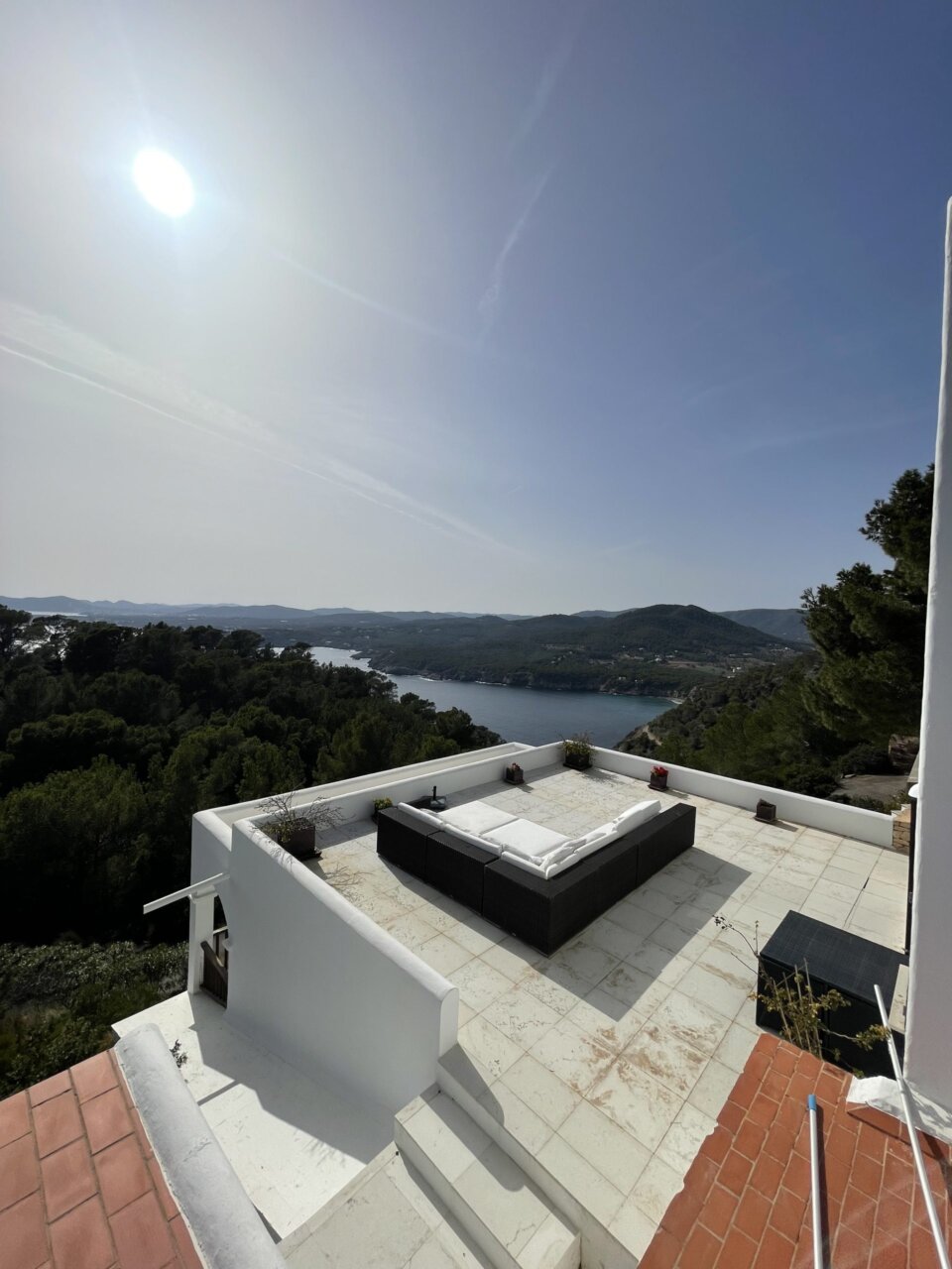 Desde sus terrazas —diez en total— se domina el paisaje de la costa y la isla de Tagomago, con vistas que alcanzan el amanecer y la puesta de sol en un mismo día. “La propiedad se encuentra en la cima de la montaña, lo que le aporta 350 grados de vistas al mar; es realmente especial”, declaró Javier Medina, director de John Taylor Ibiza, en una entrevista concedida al portal Cool The Lifestyle.