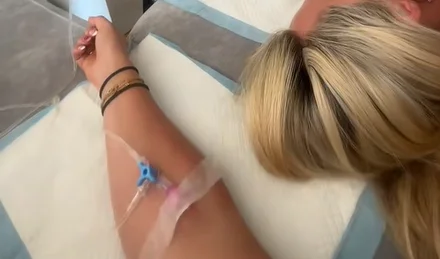 La escena ha sido grabada por la usuaria @becfear, quien aclara en los comentarios que se trata de un servicio de «IV hydration / liver detox», es decir, un tratamiento destinado a la rehidratación rápida y a la desintoxicación del hígado.