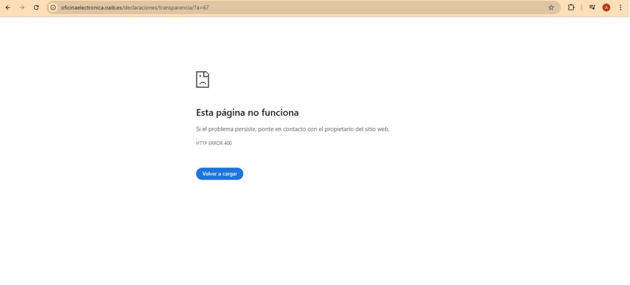 El Registro de bienes, intereses y actividades que gestiona, controla y publica la Oficina de la Oficina de Prevención y Lucha contra la Corrupción de las Islas Baleares, para ver todas las declaraciones de los cargos públicos y del personal eventual de la Comunidad Autónoma, no se encuentra disponible.