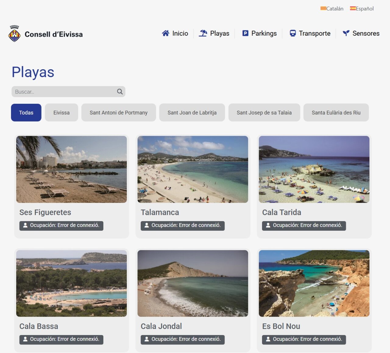 Un simple repaso por la plataforma deja en evidencia las deficiencias. Es que no se encuentran disponibles ninguno de los datos que debería ofrecer, desde el estado de las playas hasta los parkings y sensores ambientales. Todos mantienen una leyenda: “Error de conexión”.