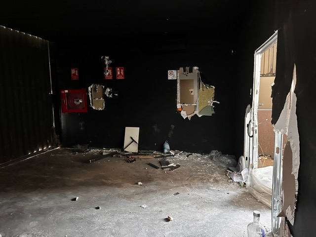 Según el informe del perito, “la destrucción de las naves es total. Se han dañado elementos constructivos, paredes, falsos techos, carpinterías, sanitarios, instalación eléctrica, instalación contraincendios e instalación y equipos de aire acondicionado”.