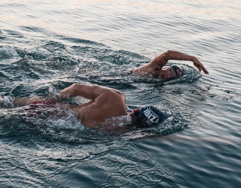Ambos nadadores alzaron los brazos al llegar a la meta, exhaustos pero satisfechos, en una imagen que ya forma parte de la historia deportiva de Ibiza.