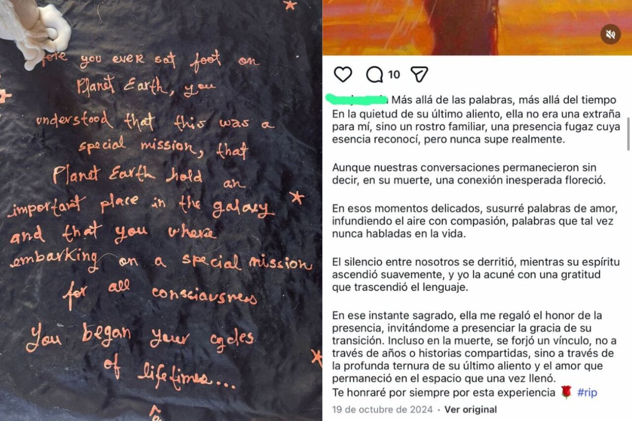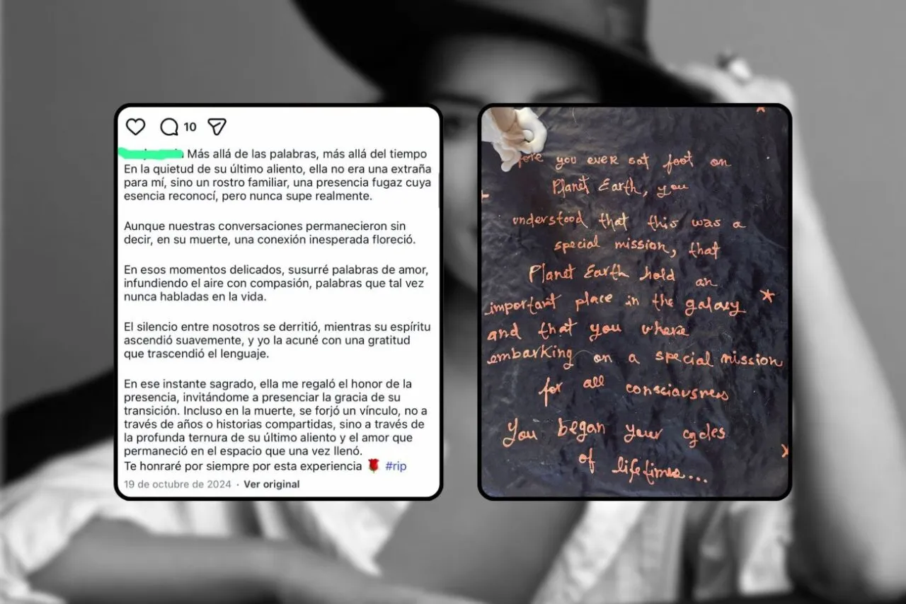 “En ese instante sagrado, ella me regaló el honor de la presencia, invitándome a presenciar la gracia de su transición. Incluso en la muerte, se forjó un vínculo, no a través de los años o historias compartidas, sino a través de la profunda ternura de su último aliento y el amor que permaneció en el espacio que una vez llenó”.