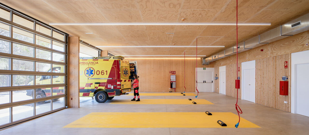 La base tiene una superficie de 890 m2 divididos en dos plantas conectadas internamente, una planta baja de 605 m2 donde se ubican los locales de servicios generales, acceso, recepción, sala de descanso y sala administrativa y un aparcamiento para ambulancias con capacidad para cuatro vehículos.
