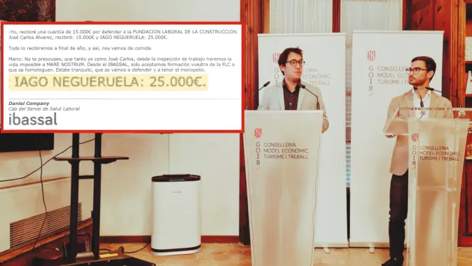 En uno de los correos aportados a la justicia, el director del Ibassal, Daniel Company, alude directamente a que el actual portavoz del Grupos Socialista en el Parlament, Iago Negueruela, hombre fuerte de Armengol en Baleares y ex conseller portavoz y de Trabajo y Turismo habría cobrado 25.000 euros y por asegurar que solo la Fundación Laboral de la Construcción (FLC) pudiera ofrecer formación de prevención de riesgos laborales, eliminando la competencia de Mare Nostrum. Asimismo se afirma que Negueruela estaba al tanto y aprobaba las acciones para impedir que Mare Nostrum obtuviera la acreditación, favoreciendo así a Diconsal y a la FLC.