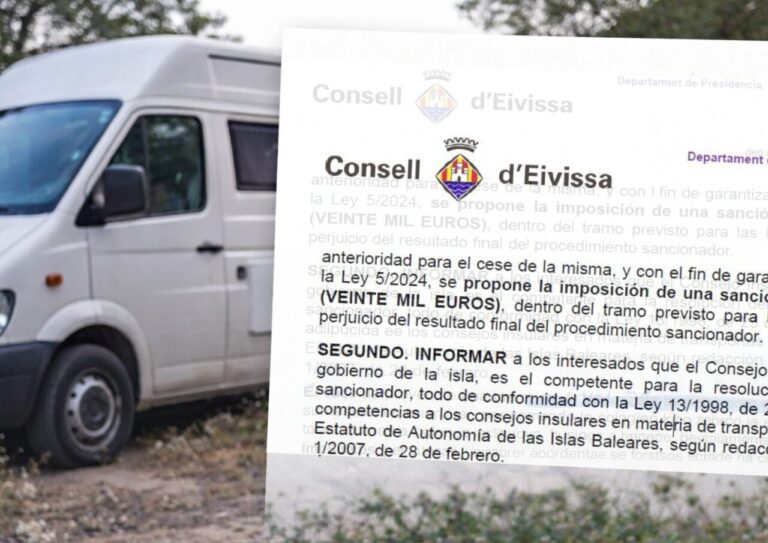 Una mujer embarazada, con un salario mínimo y sin otra alternativa para vivir en Ibiza, atraviesa una situación límite tras ser multada con 20.000 euros por estacionar durante tres días su furgoneta en suelo rústico. Con apenas tres meses y medio de gestación, continúa trabajando mientras lidia con una sanción que, según su entorno, le ha provocado un fuerte estado de ansiedad. “Está muy afectada, muy delicada”, explican.