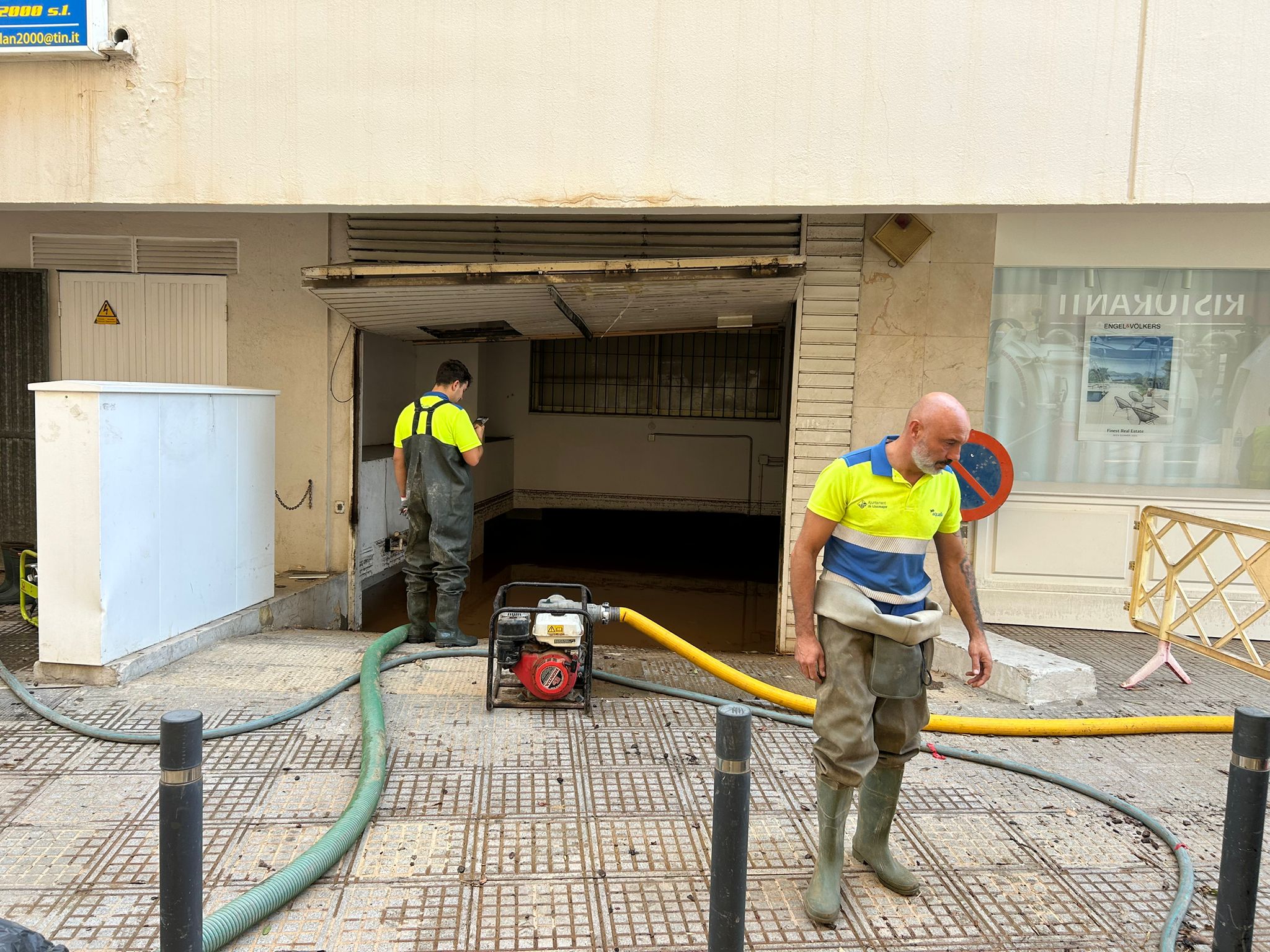 En paralelo, equipos de la UME y de los Bomberos trabajan en el achique de agua en un garaje del edificio Cabiro, en la calle del Diputado José Ribas.