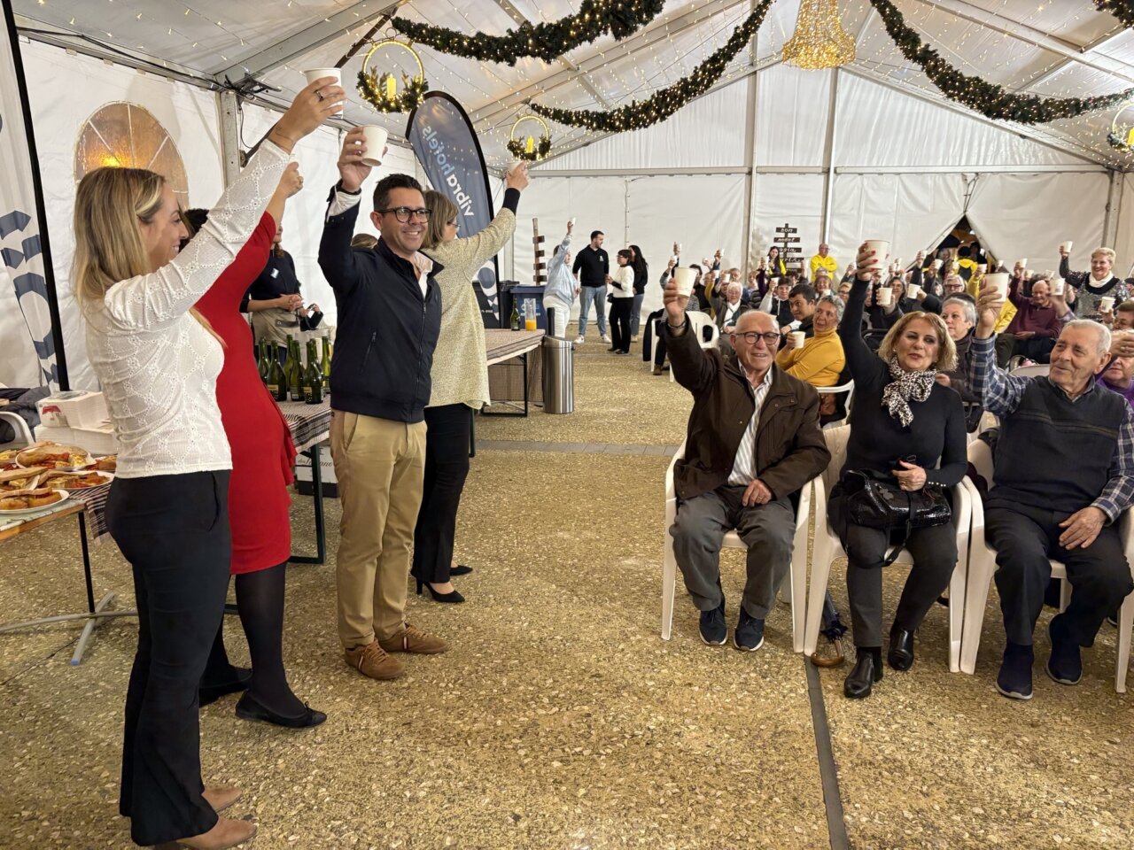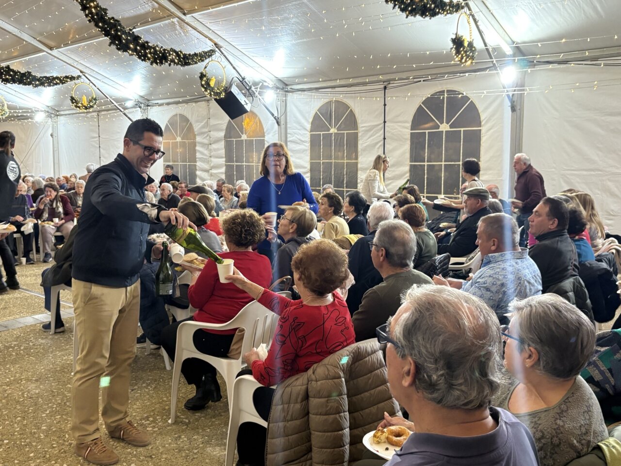 Cerca de 300 personas mayores se dieron cita este jueves en la carpa de Vara de Rey, en Ibiza, para celebrar el brindis navideño del Club de Jubilados del Esplai de Can Ventosa, un encuentro cargado de reencuentros, alegría y espíritu navideño. El evento, organizado por el Ayuntamiento de Ibiza, tuvo como objetivo ofrecer un espacio de celebración y hermandad para quienes forman parte activa de la vida comunitaria de la ciudad.