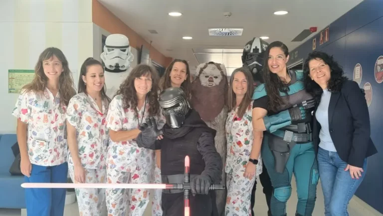 Equipo de Pediatría junto a los personajes de Star Wars.