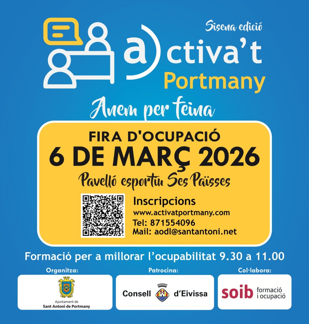 El Ayuntamiento de Sant Antoni de Portmany, a través de la concejalía de Fomento del Empleo, organiza la sexta edición de la feria de empleo ‘Activa’t Portmany. Anem per feina’, una cita ya consolidada que se celebrará el viernes 6 de marzo en el polideportivo de Ses Païsses.