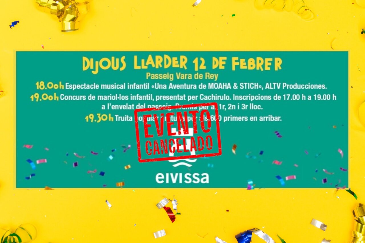 El Carnaval de Eivissa 2026 arranca con cambios de última hora. El Ayuntamiento ha anunciado la suspensión de todos los actos previstos para la tarde de este jueves 12 de febrero,  por motivos preventivos frente a los fuertes vientos registrados durante la jornada