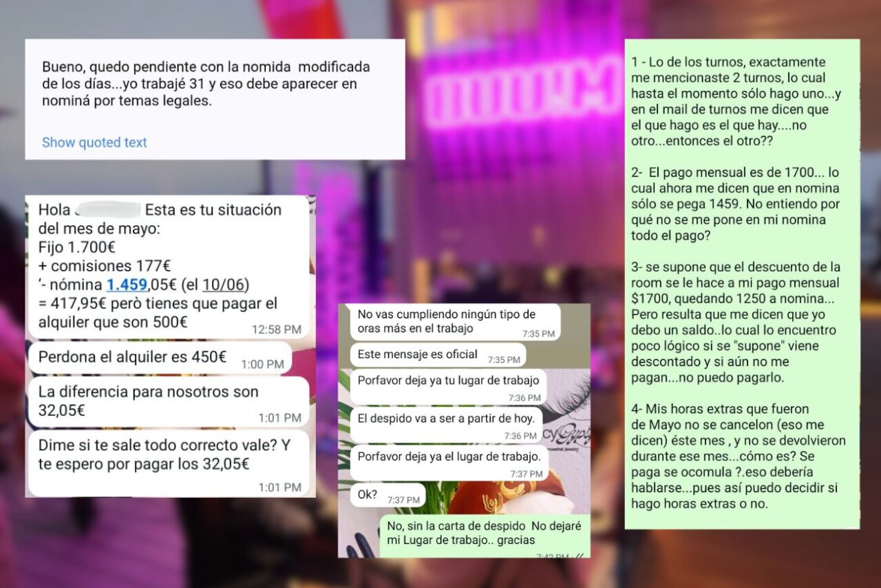 En tal sentido, detalla que allí “viven sus trabajadores, 14 personas, pagando en promedio 450 euros cada una”. Esta renta se descuenta de los pagos a los trabajadores, algo que pudo corroborar La Voz de Ibiza a partir de diferentes conversaciones a través del sistema de Whatsapp con los responsables de la empresa.