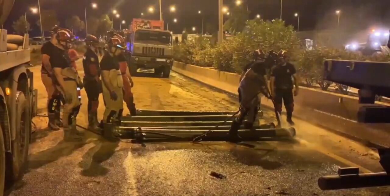 El desbloqueo de la carretera fue posible tras el trabajo continuo de la Unidad Militar de Emergencias (UME), que desplegó en la zona bombas de gran capacidad para extraer el agua acumulada, llegadas desde Zaragoza y Madrid.