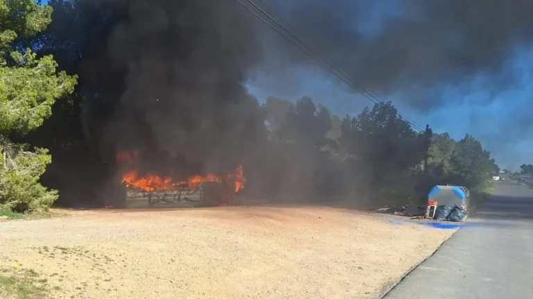 La embarcación abandonada que apareció el pasado viernes junto a los contenedores de basura en el municipio de Sant Josep ha terminado ardiendo este jueves en un incendio que requirió la intervención de los Bomberos de Ibiza. El fuego, que comenzó a las 14:10 horas en el kilómetro 5 de la carretera EI-700, afectó gravemente al barco de siete metros de eslora y a restos de vehículos también depositados en el lugar.