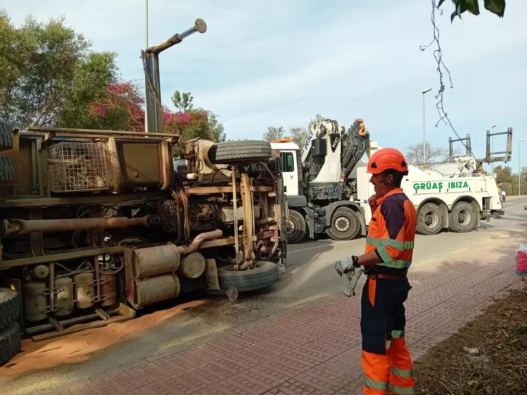 Un camión con una carga de palmeras ha volcado a las 9 y media de esta mañana en la avenida Cap Martinet de Santa Eulària des Riu, bloqueando gran parte de la calzada.