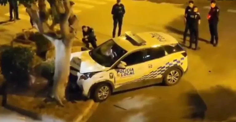 El accidente de tráfico ha ocurrido este lunes, minutos después de la medianoche. Según las primeras versiones del episodio, la patrulla iba con las sirenas y luces encendidas cuando se le cruzó en su camino una moto. Por la maniobra, el coche policial ha terminado impactando contra la planta.