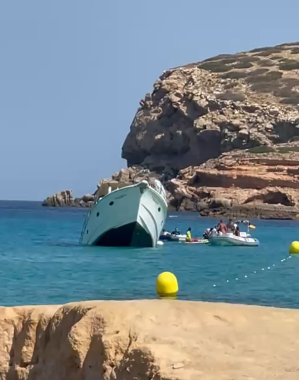 Una embarcación, que se encontraba fondeada a metros de una playa en Ibiza, se ha hundido este miércoles por la mañana.