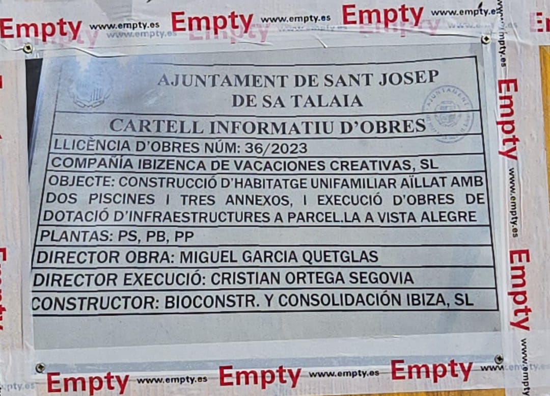 La construcción del megaproyecto de los petrodólares de una millonaria familia de Texas en la exclusiva urbanización de Vista Alegre se ha puesto en marcha con una flagrante irregularidad: incumple el condicionante establecido por la licencia de construcción otorgada por el Ayuntamiento de Sant Josep durante la anterior legislatura. Además, se encuentra en una zona que el avance del Plan General de Ordenamiento Urbanístico propone desclasificar por riesgo de derrumbe.