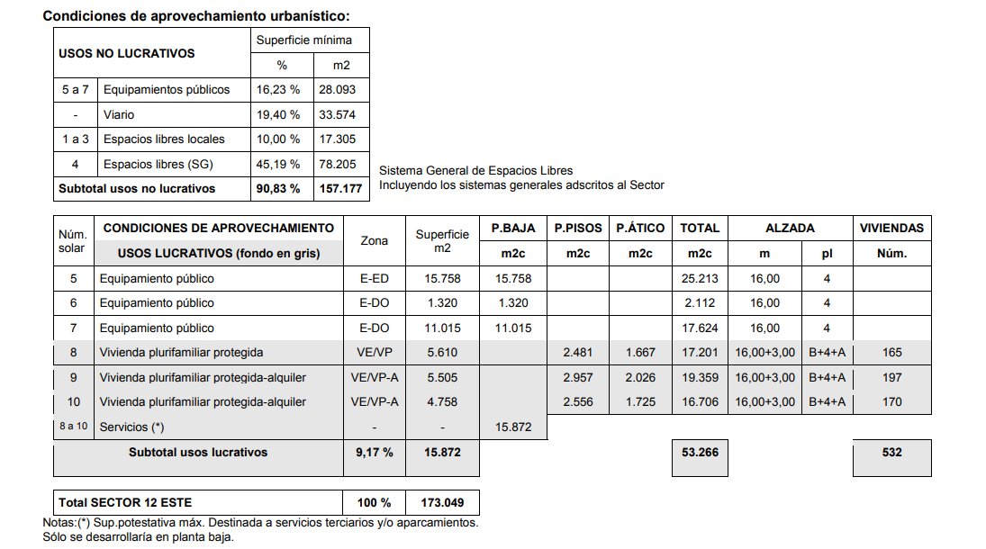 A pesar de la evidente y acuciante crisis de la vivienda, en esas más de 17 hectáreas (170.000 metros cuadrados) apenas se utilizará menos del 10% (9,17% para ser exactos) para levantar los tres edificios donde se construirán las 532 viviendas (170 por parte del Ibavi en la Parcela 10 y el resto a cargo de Casa 47 en las manzanas 8 y 9).