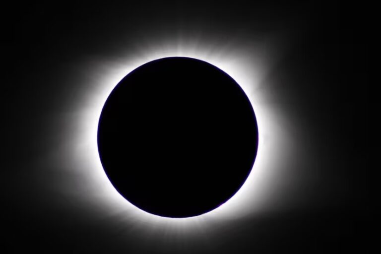 Durante unos instantes, la Luna cubrirá completamente el disco solar y permitirá observar la corona solar, el halo brillante que rodea al Sol y que solo puede apreciarse durante eclipses totales.