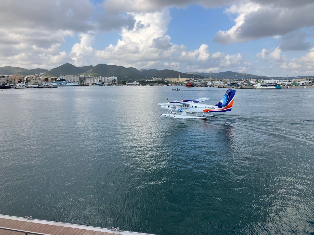 https://www.youtube.com/watch?v=Ts5Hb75Ty6s A las 11.50, el hidroavión bimotor de la empresa Isla Air Express recortó el cielo ibicenco y, tras algunas maniobras de aproximación, amerizó prácticamente a los pies de Vila. Minutos después, ya se encontraba atracado en el muelle instalado en forma provisional en la zona de Marina IGY. Se trató de la primera prueba llevada a cabo en la isla para establecer en forma regular un servicio que unirá por aire los puertos de Ibiza y Palma mediante hidroaviones Allí esperaban con cierta expectativa algunas personas que vivieron este histórico evento que ha sido registrado por La Voz de Ibiza.